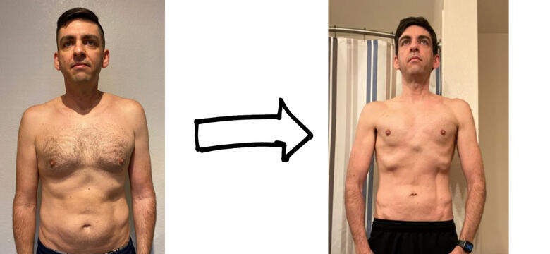 Throughout your VIP Body Transformation Program, you’ll also get 24/7 access to me and my team.This means you can message me at any time!I’ll also be checking in with you frequently to hold you accountable and help you form new habits.If you have any questions about this, feel free to ask! (@TheJackBly or @gabepluguez on Twitter)Here’s an example of how Vincent lost 32.6lbs in 12 weeks with this program.(He achieved this transformation from HOME, with 0 equipment) 👇